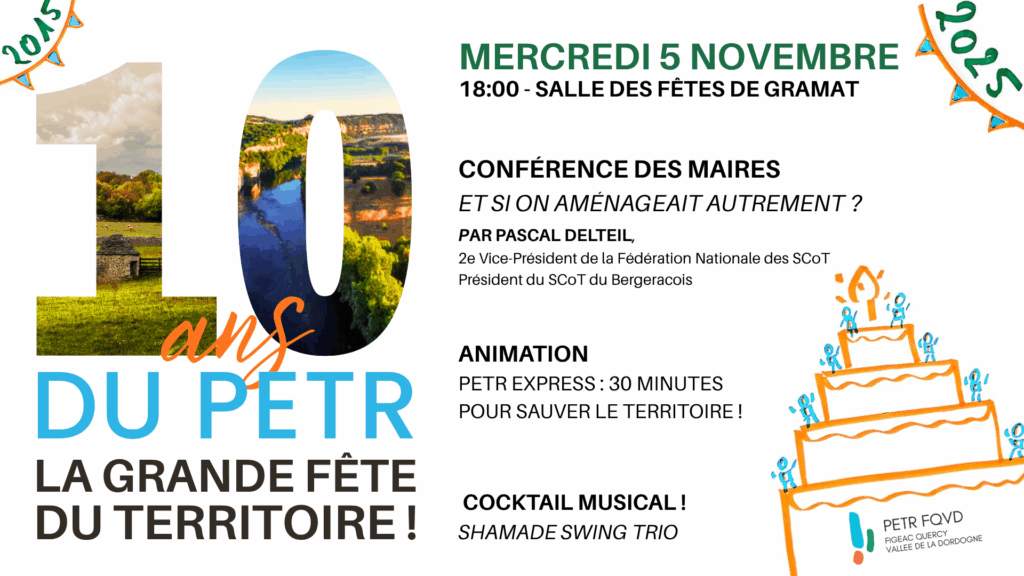 À l’occasion de ses dix ans, le PETR Figeac Quercy Vallée de la Dordogne organise un grand événement le mercredi 5 novembre à partir de 18h, à la salle des fêtes de Gramat.
